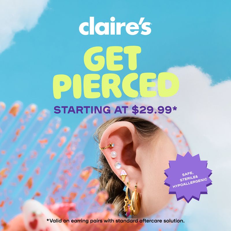 Claire’s offers free ear piercings at all of its locations with the purchase of an ear piercing kit. The total cost depends on which piercing kit you select, as Claire’s offers a range of options that include different earrings and aftercare solutions. Piercing kits start at $29.99 and increase in price depending on the style and material selected.